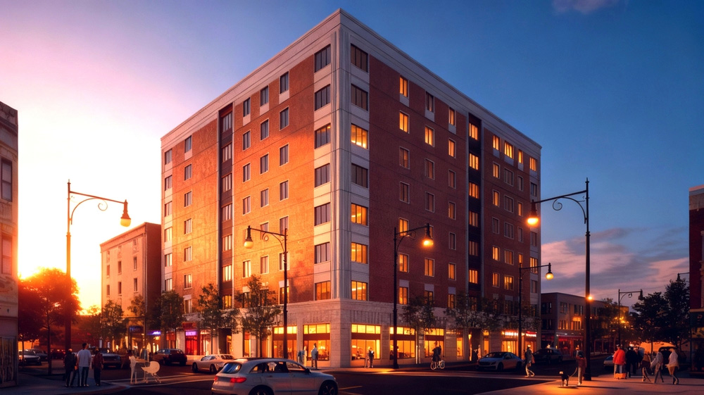 Led by developers Housing for All LLC and Visionary Ventures, the current version of the project has reduced its density by removing a floor and pivoting toward larger floor plans.